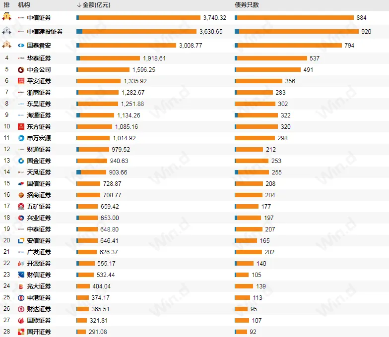 2023年1-11月券商债券承销排名!2023年1-11月,根据Wind数据统计,券商债券(含公司债券&企业债券、ABS)承销总排名如下:一、公司债券(含企业债券)二、资产支持证券(ABS)数据来源于wind,如有歧义,以实际为准!