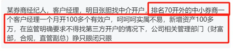 为啥?因为行业里都清楚,现在监管早就明令禁止券商通过第三方中介去拉客户开户。可这位老兄,据说就是明目张胆地找中介合作,搞渠道开户。