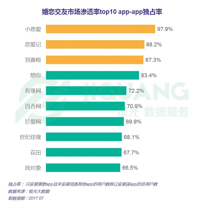 极光大数据显示,截至2017年7月最后一周,婚恋交友app渗透率为0.99%,用户规模约为892万人