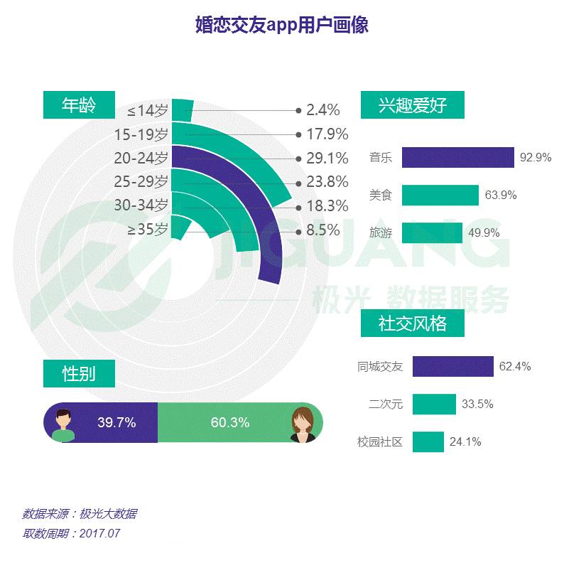 婚恋交友用户:男女比例约为2:3,近三成用户为20-24岁