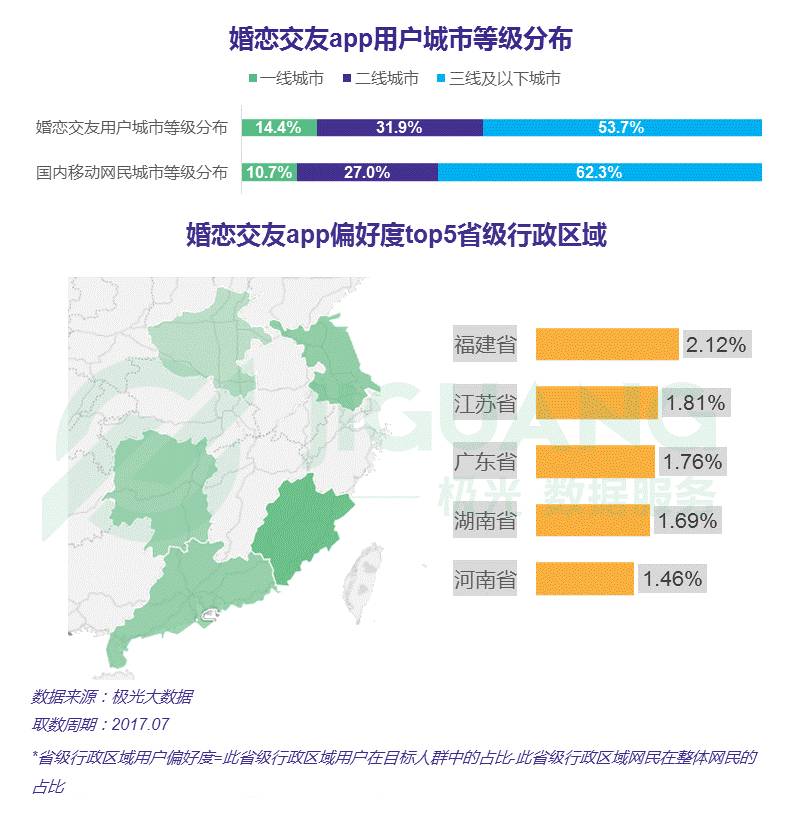 婚恋交友app用户超1/3集中在二线城市,福建省用户对婚恋交友类app偏好度最高