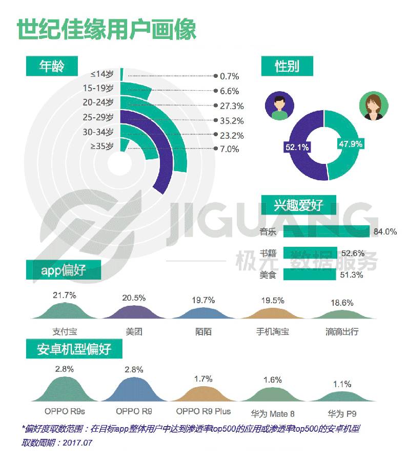 世纪佳缘用户兴趣爱好top3分别为音乐、书籍和美食