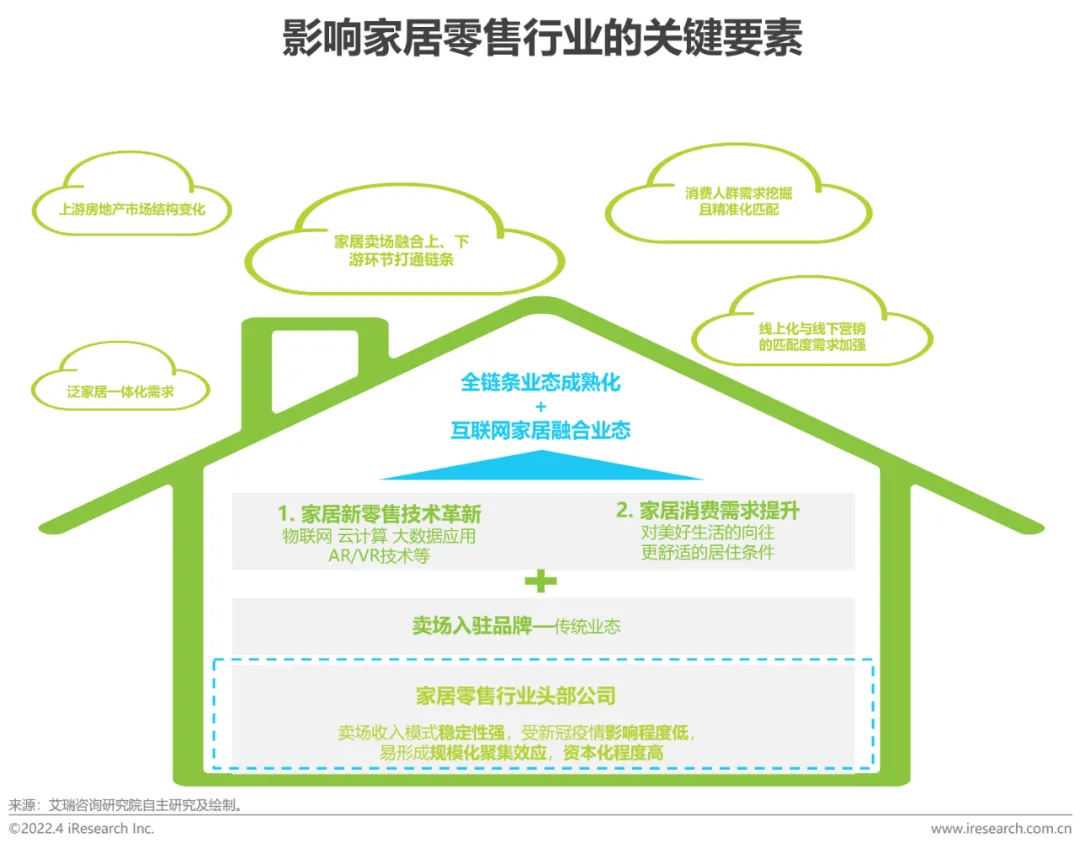 下游—家居零售:家居零售行业由于可形成触达消费者的渠道品牌,并提供一站式购物服务,满足了家居家具这类低频+非标消费品的消费痛点,因此可创造并抽取产业链中的大部分经济效益,掌握了更强的话语权。