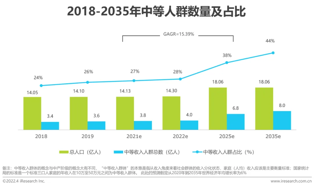 中等收入人群将成为家居零售市场的主力军。我国中等收入群体规模预计将从2022年的4亿人增至2035年的8亿人,(新结构经济学研究院院长林毅夫2021年5月在全球消费创新暨免税与旅游零售大会上发言认为到2035年中国中等人群收入可达8亿人。)同时预计2021-2025年中等收入人群CAGR达15.39%;未来随着不断缩小收入差距和城乡差距的驱动下中等收入人群在总人口占比中呈稳定扩大趋势。