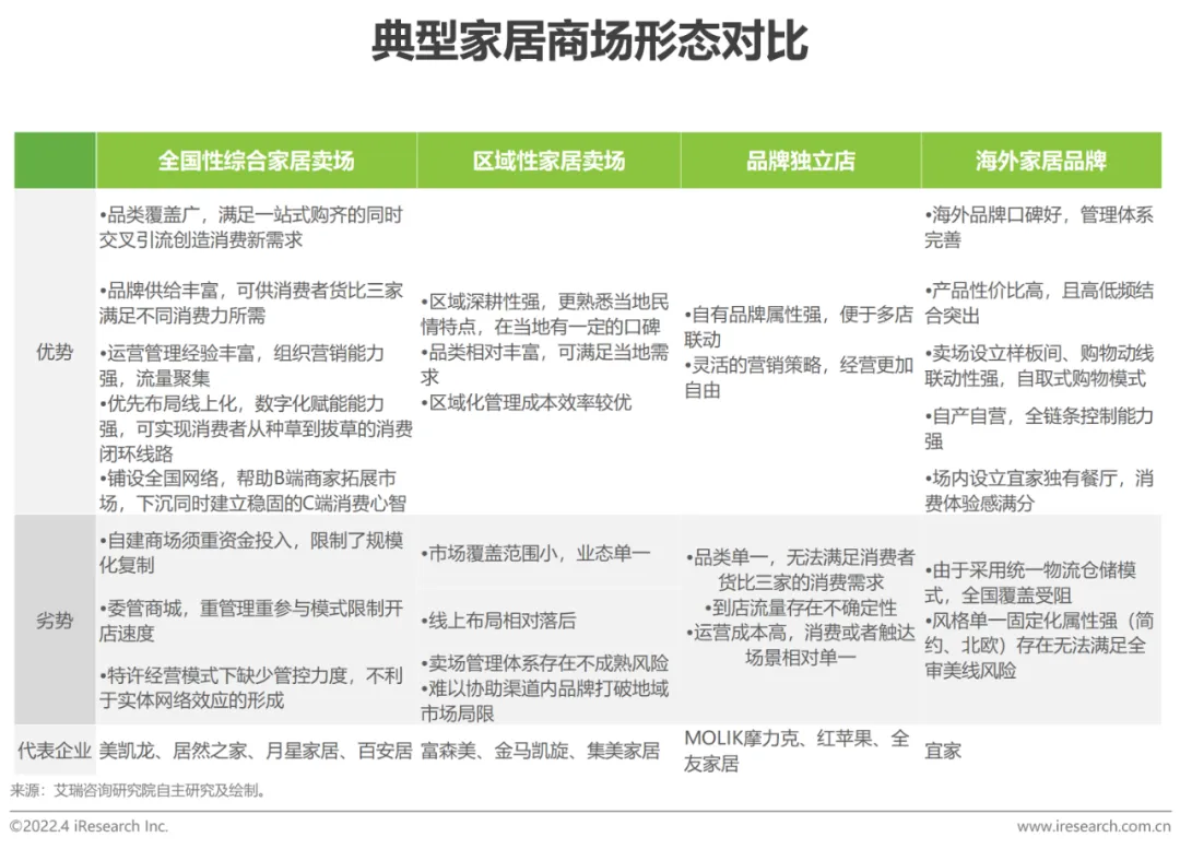 家居商场主要可分为四类,全国性家居卖场、区域性家居卖场、品牌独立店和海外家居品牌宜家。
