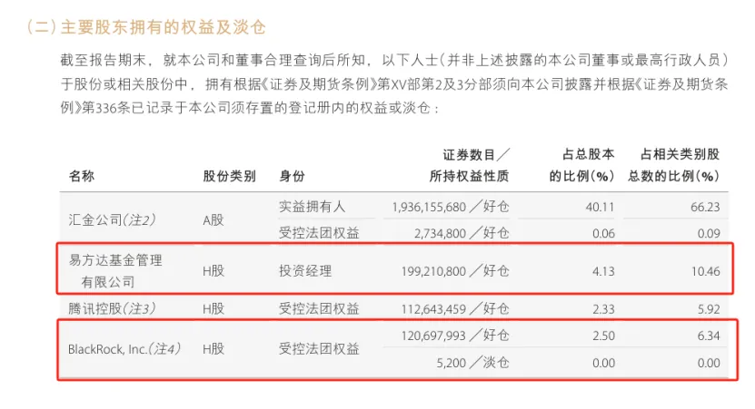 2025年报显示,贝莱德持有中金公司1.21亿股H股,占H股比例6.34%,占总股本2.5%。