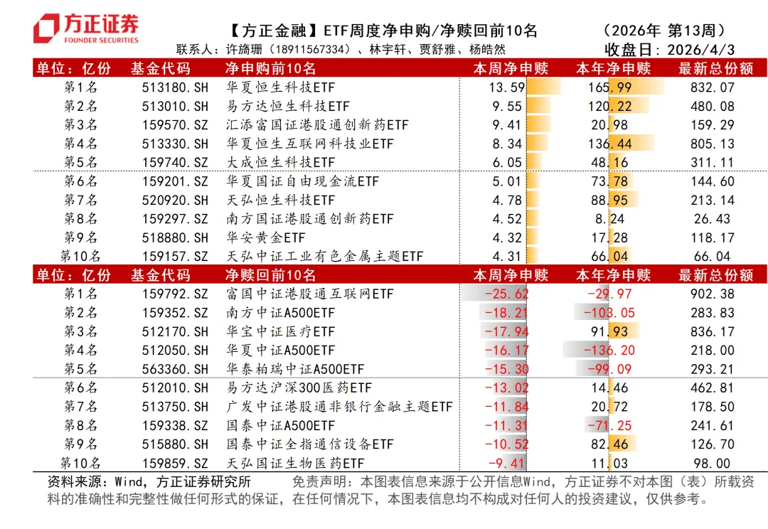 ETF净申赎周度数据跟踪(2026年第13周):