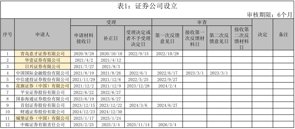 这是截止2026年4月3日的在审证券公司设立申请(黄色为笔者标示的合资券商申请)
