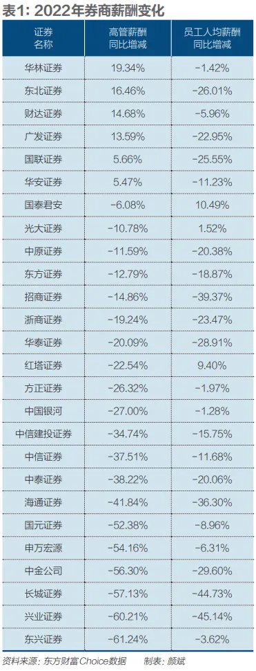 另一方面,证券公司作为金融机构,在薪酬体制方面也正面临变革。2022年5月,中证协发布《证券公司建立稳健薪酬制度指引》。同年8月,财政部对国有金融企业发布“限薪令”。