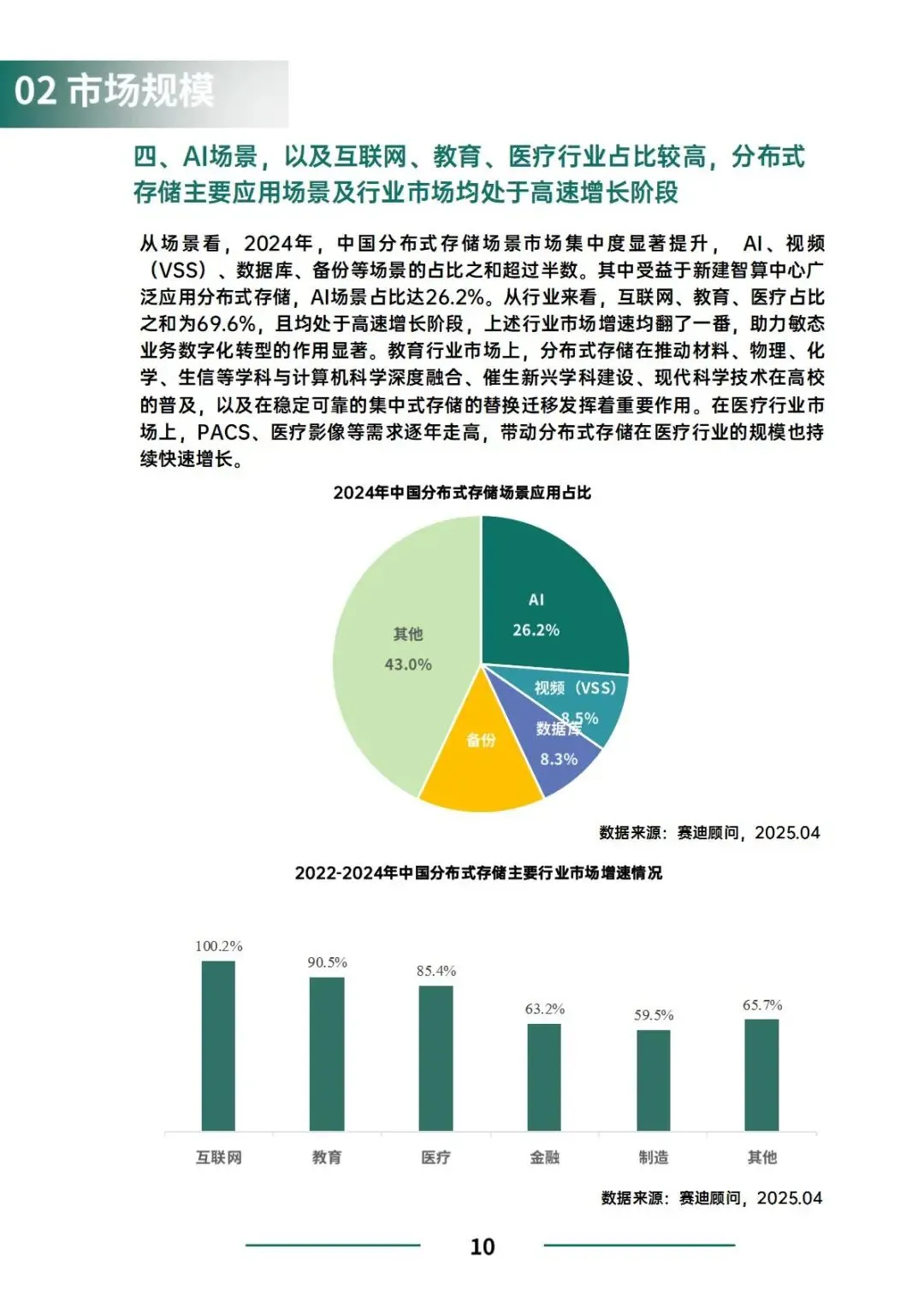 其一,AI成为核心驱动力。以DeepSeek等国产大模型为代表的AI应用,重塑了存储需求逻辑,推动AI场景在分布式存储市场中占比升至26.2%,对高性能、低延迟的存力底座提出刚性要求。