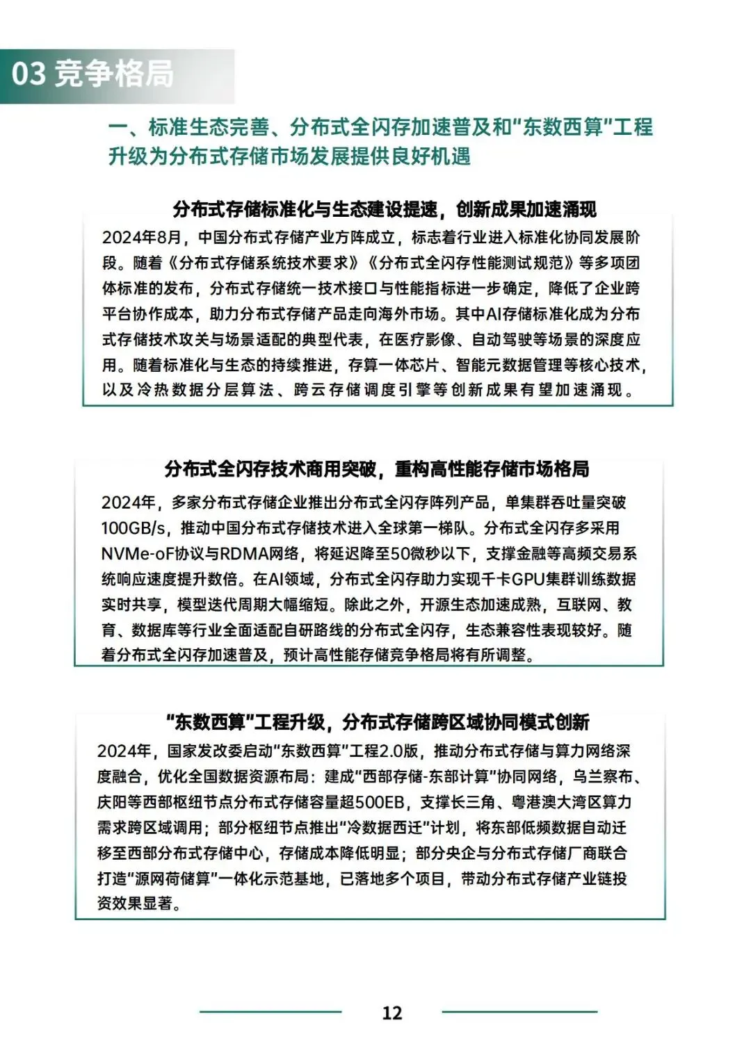 其二,技术架构加速演进。分布式全闪存凭借亚毫秒级延迟与百PB级扩展能力,成本持续下探,2024年市场规模激增71.3%;同时,东数西算工程2.0深化存算分离趋势,推动跨区域协同与绿色低碳转型。