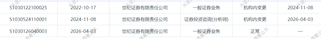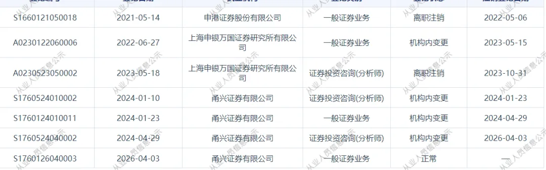 3名券商分析师变更为一般业务近日,证券从业系统显示,3名券商分析师,类别变更为一般证券业务:1、潘子栋。潘子栋,万和证券机械设备行业分析师2、罗晴。罗晴,世纪证券TMT行业分析师3、赵飞。赵飞,化工行业分析师。毕业于新南威尔士大学,石油工程硕士。具有多年中国石油工作经历,以及申港证券、申万宏源证券行业研究经验,主要研究领域包括石油化工、基础化工。