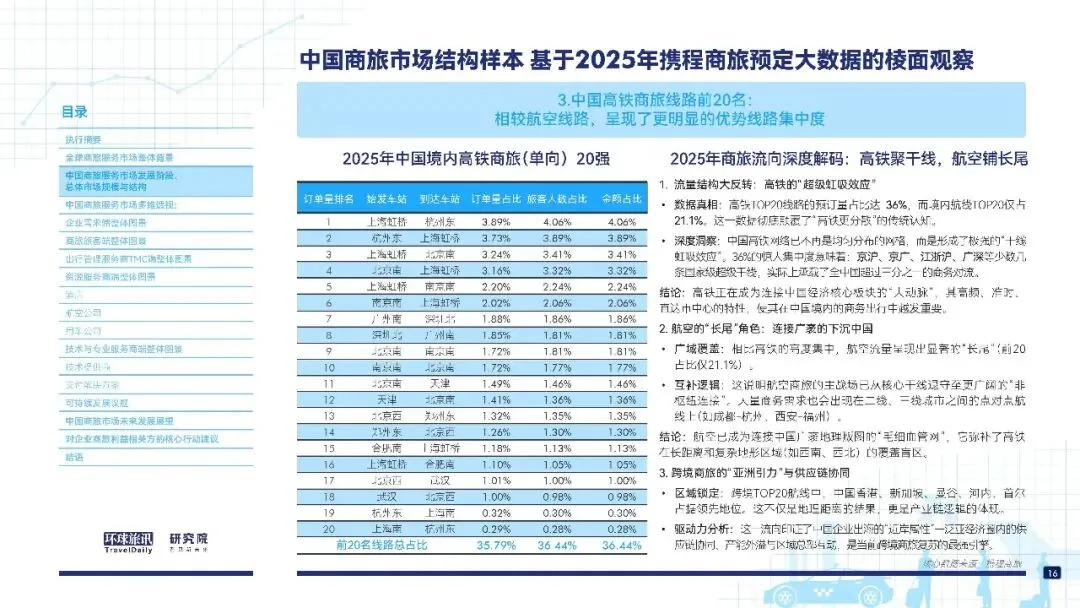 流量特征:高铁呈干线虹吸(TOP20 线路占 36%),航空为长尾覆盖,跨境集中于亚太地区。