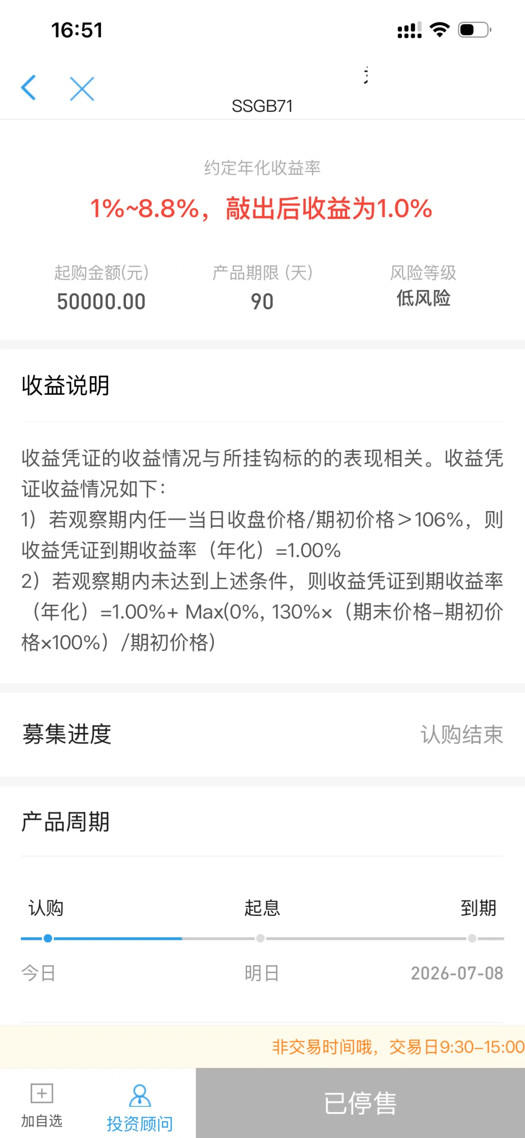 2024 年 10 月 25 日发布的《证券公司收益凭证发行管理办法》里明确规定 “证券公司设计、发行浮动收益凭证的,应当坚持审慎原则,因挂钩标的相关风险导致的浮动收益部分亏损金额应不超过固定收益金额”,所以整体看这个投资品种几乎不会亏本。