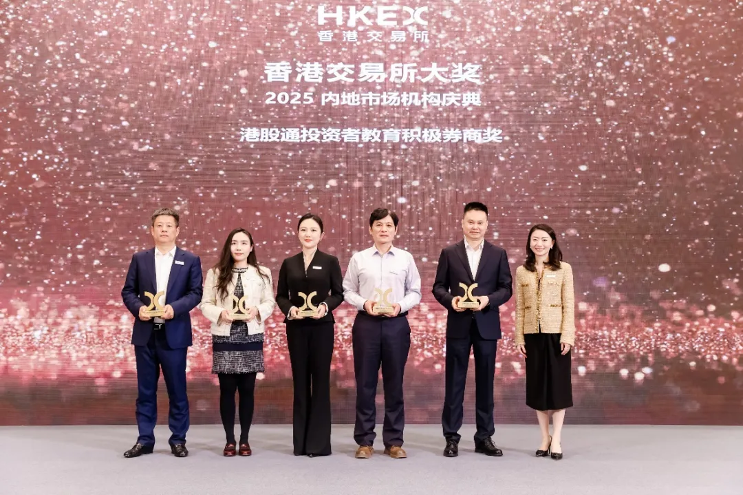 近日,香港交易所大奖2025内地市场机构庆典在杭州成功举办。本次活动由香港交易所主办,来自内地证券公司、内地数据服务商等机构的数百位嘉宾参会。国信证券受邀参加,并获得“港股通投资者教育积极券商奖”,国信证券深圳泰然九路证券营业部获评“港股通优异贡献券商营业部”。