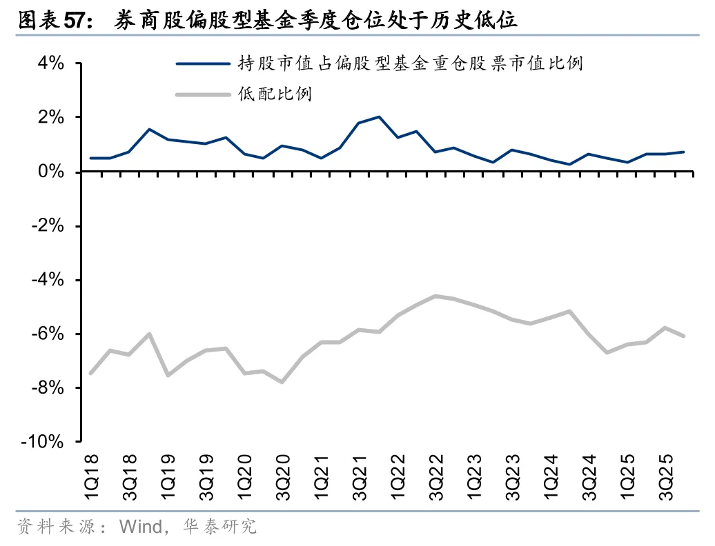 2018年来A股券商指数在历次板块行情中的PB估值均值约1.46x-1.82x,最高近2.5x,其中十家大券商PB均值约1.44x-2.02x。当下市场活跃度保持高位,但截至4月3日,A股券商指数PB仅1.24x,其中大券商PB均值仅1.22x,H股中资券商指数PB仅0.68x。同时,机构和长线资金持仓始终较低,主动偏股基金截至4Q25末持仓比例仅0.72%。我们认为板块业绩增长持续性较好,前期资金压制因素有望缓解,叠加估值、仓位双低,当前是战略性布局配置的窗口。建议把握三条主线:1)优质低估头部券商,综合实力突出、国际业务领跑;2)受益于地区产业经济优势,在科创企业直投、跟投维度有优势的中小券商;3)区域性并购重组带来的结构性机会。