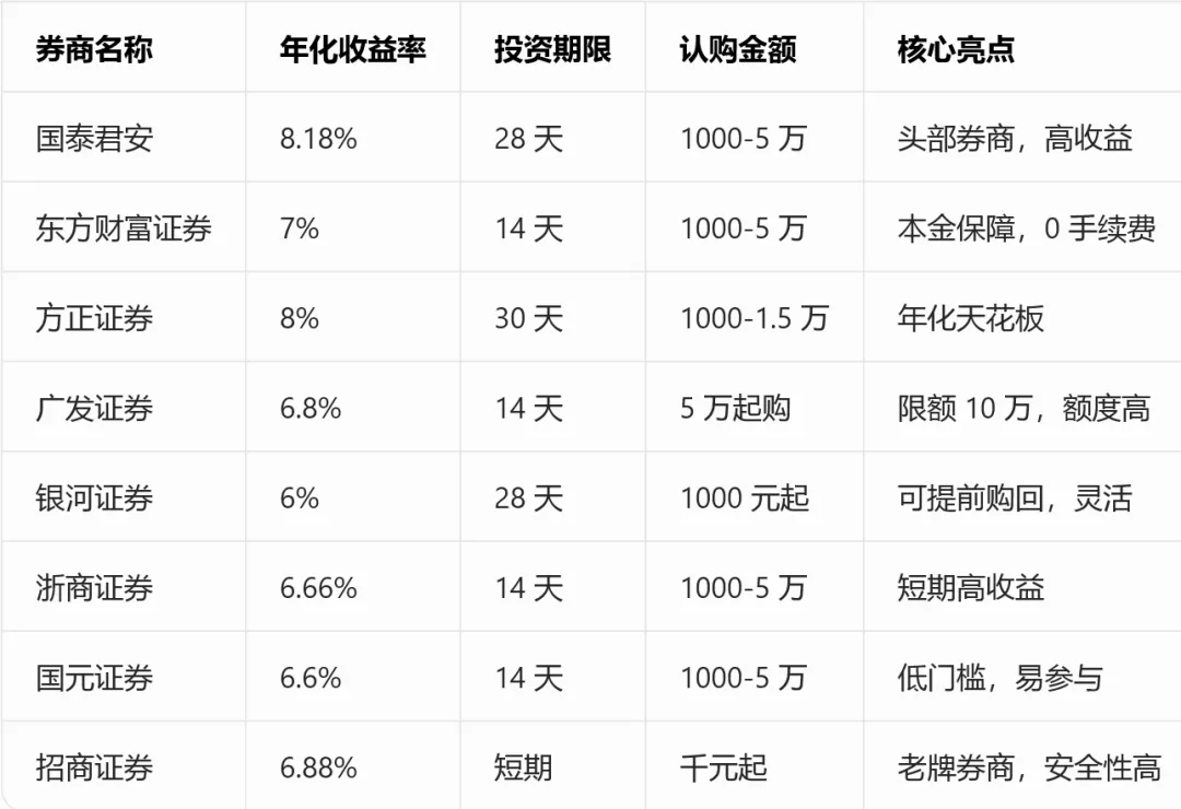 注:以上产品信息为整理参考,具体收益率、额度、期限以各券商官方 APP 最新发布为准,产品售完即止!