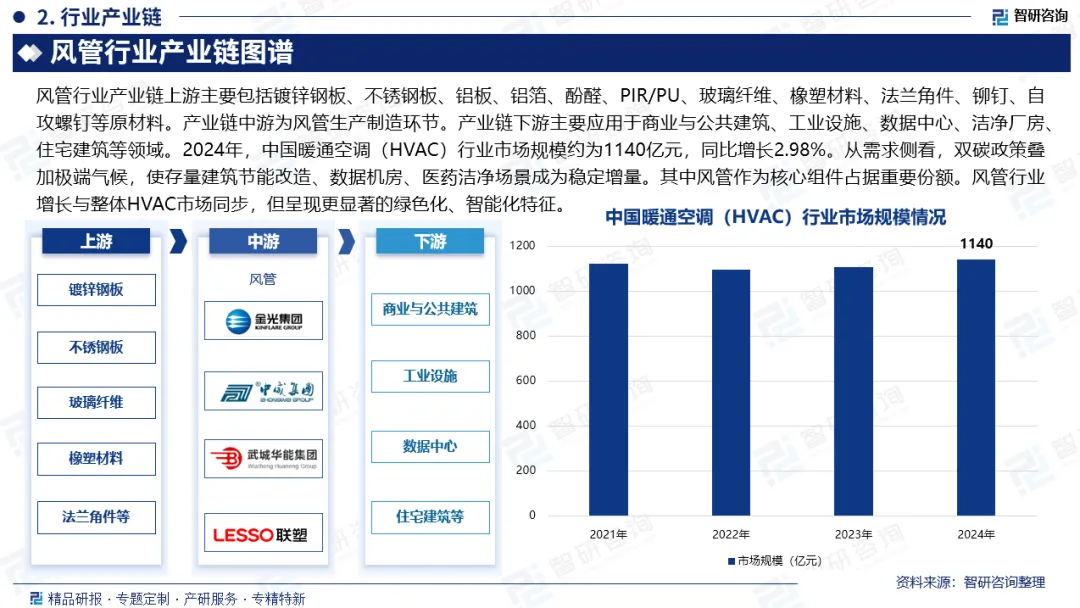 《2026-2032年中国风管行业市场供需态势及发展潜力研判报告》基于最新、最全的中国产业链数据,融合权威官方统计、深度企业调研、资本市场洞察及全球信息,通过严格的智能处理和独家算法验证,确保分析结论高度可靠、透明且可追溯。