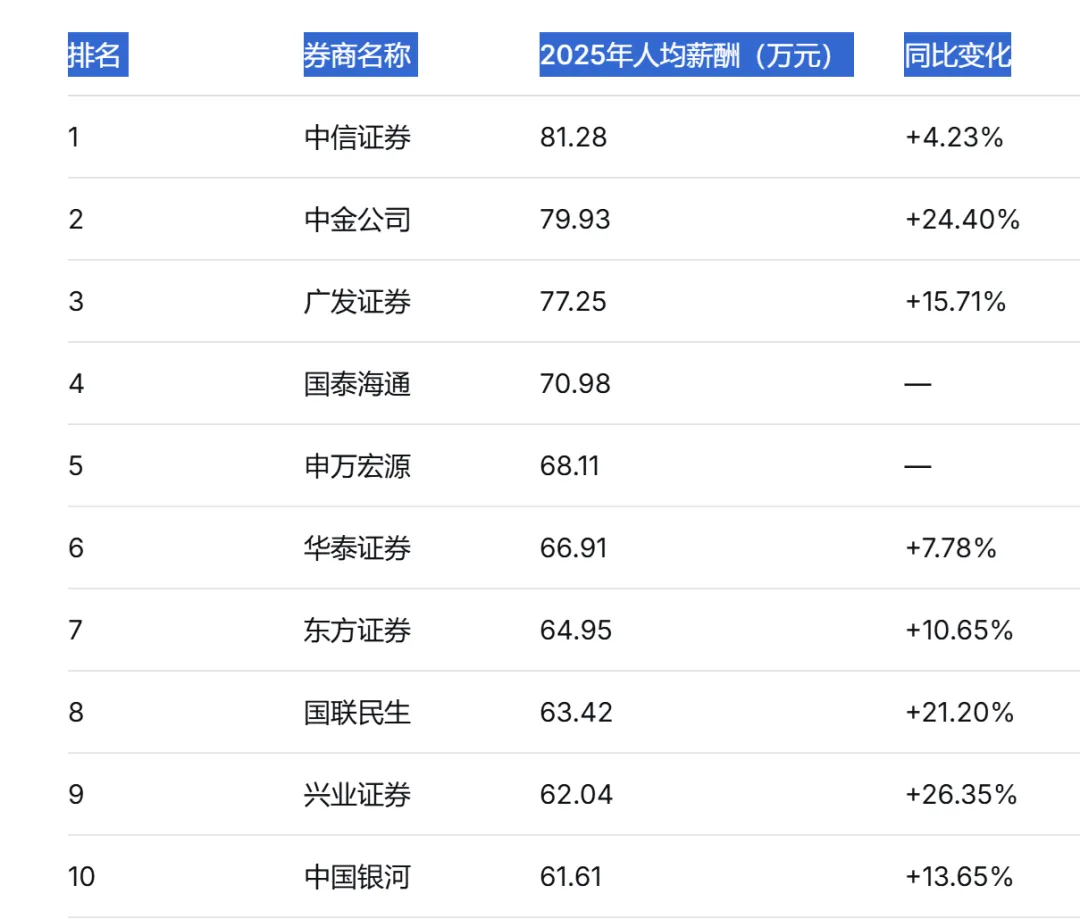 券商“一哥”中信证券以81.28万元的人均薪酬冲上热搜。