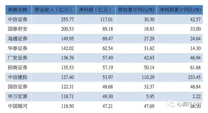 赚钱能力、业务牌照、综合实力的比拼阵地将是中国市场。一个是国内券业“一哥”,一个是美国资产值最大的银行。中信证券(600030.SH)与摩根大通相遇在财报季,围绕赚钱能力、增长潜力的比拼正式展开。中信证券业绩快报显示,公司2019年全年营收431.77亿元,同比增长16%;净利122.88亿元,同比增长30.86%;而最新季报显示,2019年四季度,摩根大通经调整后营收292.1亿美元(约合2013亿元),同比增加9%;净利85亿美元(约合585亿元),同比增加21%。从上述数据不难发现,摩根大通单季营收是中信证券全年营收的4.66倍,单季净利更是中信证券全年净利的4.76倍。“一对一”的较量不占优势,即使“一对多”,情况也不大乐观。从资本金实力来看,数据显示,截至2019年三季度末,国内131家券商总资产为7.02万亿元,而摩根大通同期资产规模近2.8万亿美元(约合20万亿元),高盛、摩根士丹利资产规模也均在1万亿美元左右(约合6.88万亿元)。知己知彼,随着2019年12月上市券商经营业绩的悉数披露,券商2019年经营全貌愈发清晰,市场迎来总览国内券业经营实力的机会。第一财经记者据Wind梳理发现,将2019年1至12月单月营收与单月净利简单加总,2019年1至12月,36家上市券商共计实现营业收入2370.61亿元,实现净利润924.99亿元。其中,前十大券商贡献了近六成营收、七成净利润。而多数券商,仍难闯进年营收50亿的大关。券业业绩披露仍在进行,招商证券(600999.SH)、国元证券(000728.SZ)日前发布2019年业绩快报,业绩普遍报喜。招商证券预计2019年的净利润与上年同期相比,将增加26.55亿元到30.97亿元,同比增加60%到70%;国元证券2019年初步净利润9.17亿元,同比增长37%。整体来看,受自营增长带动,国内券商2019年经营业绩回暖可期。前三分别为中信证券、国泰君安(601211.SH)、海通证券(600837.SH)。其中,中信证券以255.77亿营收、117.01亿净利排在首位;国泰君安营收200.53亿、净利89.19亿,位居次席;排在第三的是海通证券,不过其营收与上述两家差距较大,总计实现149.95亿营收、69.47亿净利。入围前十名者还有:华泰证券(601688.SH)、广发证券(000776.SZ)、招商证券、中信建投(601066.SH)、国信证券(002736.SZ)、申万宏源(000166.SZ)、中国银河(601988.SH)。上述几家券商的年度营收均超百亿。值得关注的是,上述10家头部券商去年1至12月总计实现营收1507.48亿元,占全部36家券商总营收的63.59%;实现净利润652.04亿元,占全部净利润的70.49%。2019年1至12月累计营收前十位券商(资料来源:WIND)
