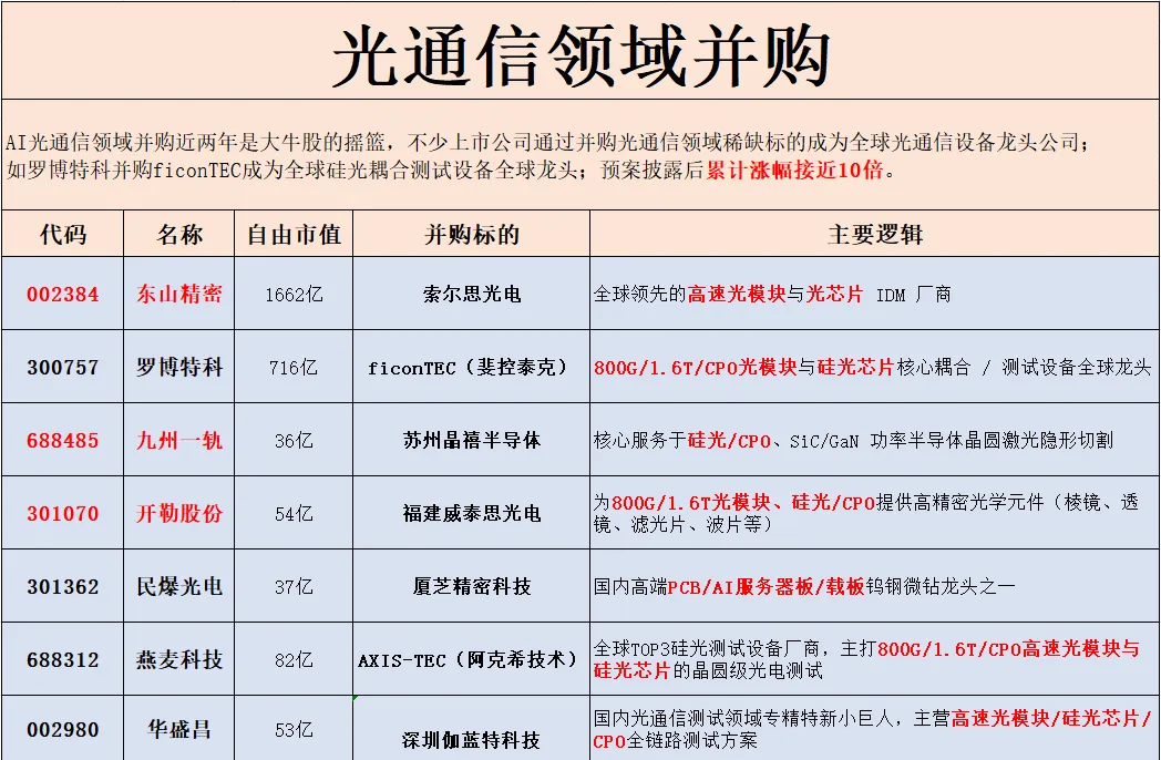 (5)【光器件】标的:长飞光纤、太辰光等。