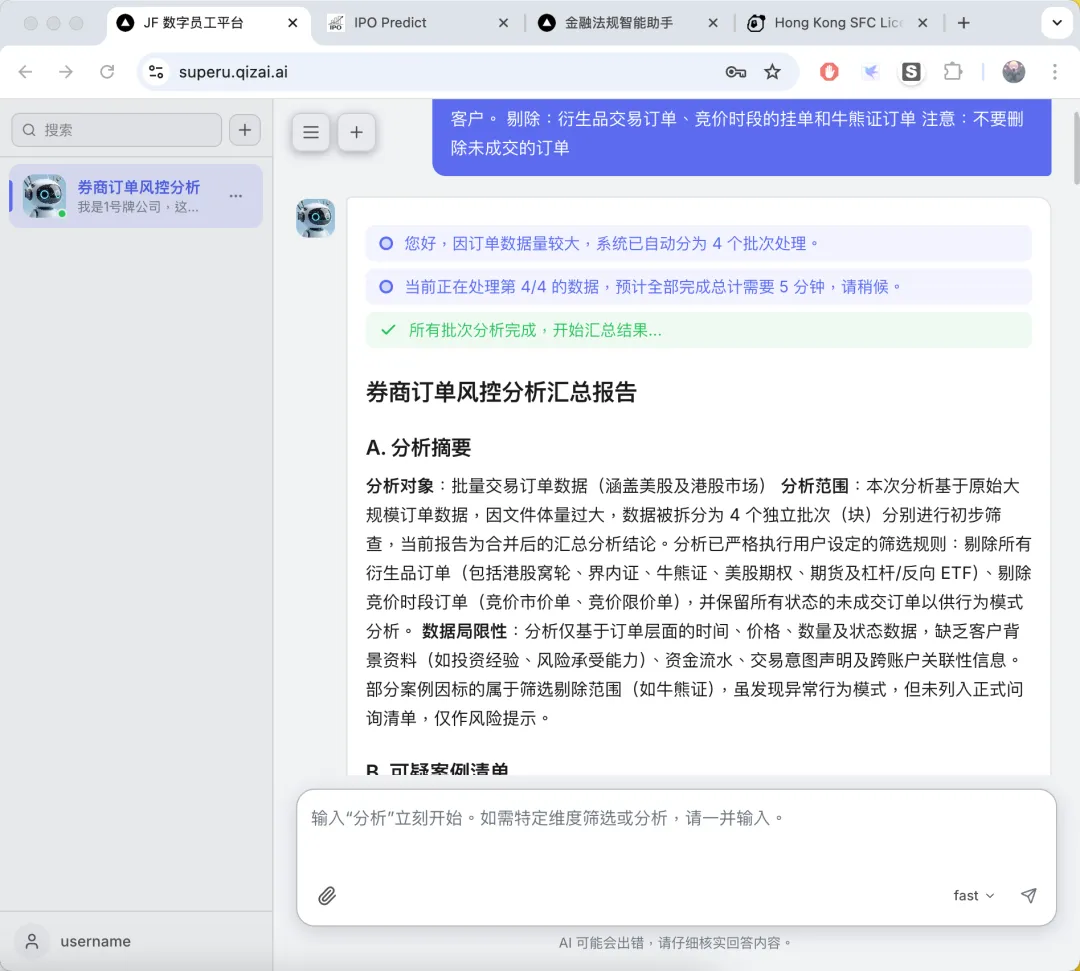 AI尝试:香港券商的实时可疑交易监控熊猫证券和极峰精灵最近几个月在尝试券商内部场景的一些AI小工具:- KYC(了解你的客户)/CDD(客户尽职调查)/EDD(增强尽职调查)