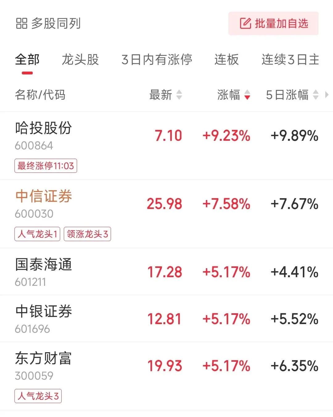今日头条:券商龙头,今天的靓仔,直接带动板块。