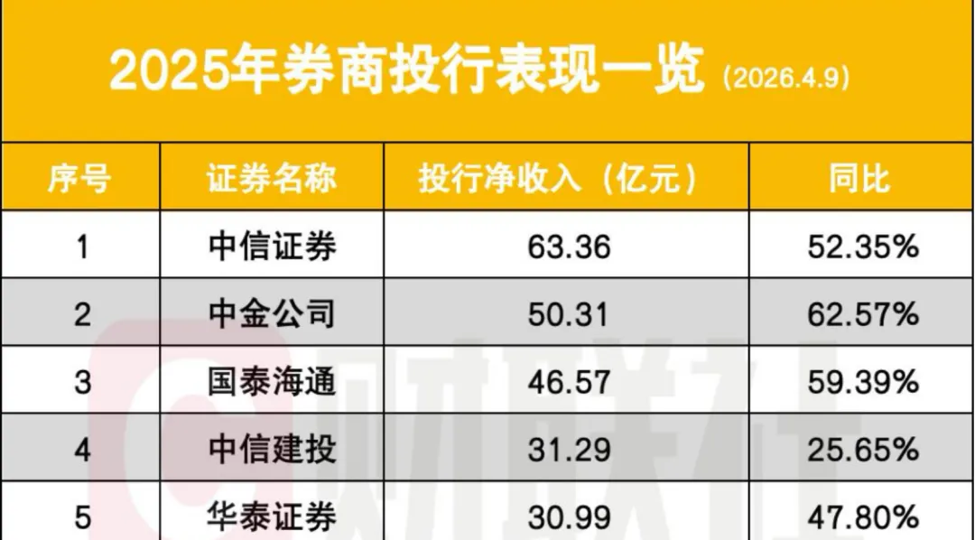 长期以来,“三中一华”(中信证券、中金公司、中信建投、华泰证券)被视为中国投行业的第一梯队,这一格局几乎成为行业共识。然而,2025年年报的披露宣告了这一格局的正式瓦解。