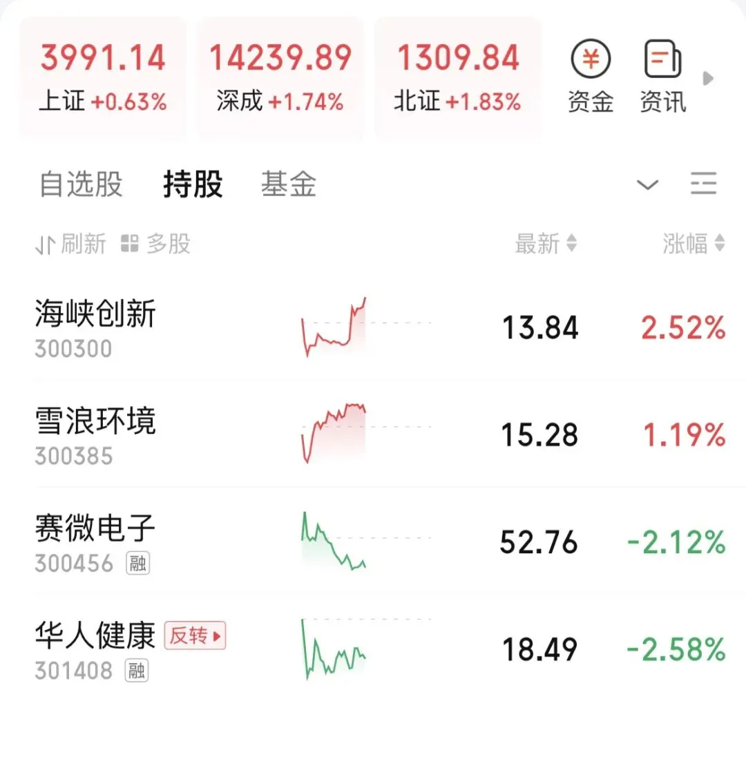 多说一点,目前早盘的话指数涨太快,量化今天又兑现了。本来伊美谈判确定性就不够,昨天普跌,今天普涨,量化玩得冰点买,高潮卖,那今天就很容易冲高回落被砸。指数今天有点感觉像诱多呢,创业板指这个新高能持续吗?大概还是按震荡去做较好,阴一天阳一天的。毕竟周末会怎么,消息还是会扰动。这也是指数回落的原因。低位的券商大金融有异动,锂矿也有拉升。本质都是业绩引发的,中信业绩超预期,带动券商,锂矿则是天华业绩超预期,欣旺达利好。这里券商渣男或者大金融是否值得关注?高位的如果不倒,是起不来的,但是如果高位的科技开始亏钱效应了,那就可以看低,其实盘面还是核心个股的抱团多一些,鑫多多确实厉害,硬生生把美诺华拉起来,有可转债可套利。抱团的对象都是各热点的核心,天华、东山、德明,存储这块江波龙还没出业绩,今天整体存储表现还可以。整体盘面其实是在抱团业绩股居多一些,基本上都是有业绩支撑的,然后就是部分散户抱鑫多多概念。总体今天逢高减仓较好,下周再找机会。