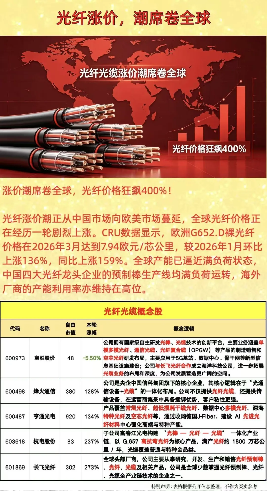 1、行业数据显示,光纤涨价潮已呈全球化蔓延趋势。单模光纤价格自去年低点累计涨幅超400%,创历史新高。光纤预制棒作为#产业链利润核心(占成本70%),全球产能逼近满负荷,扩产周期长达12-18个月,供需缺口预计将持续扩大。