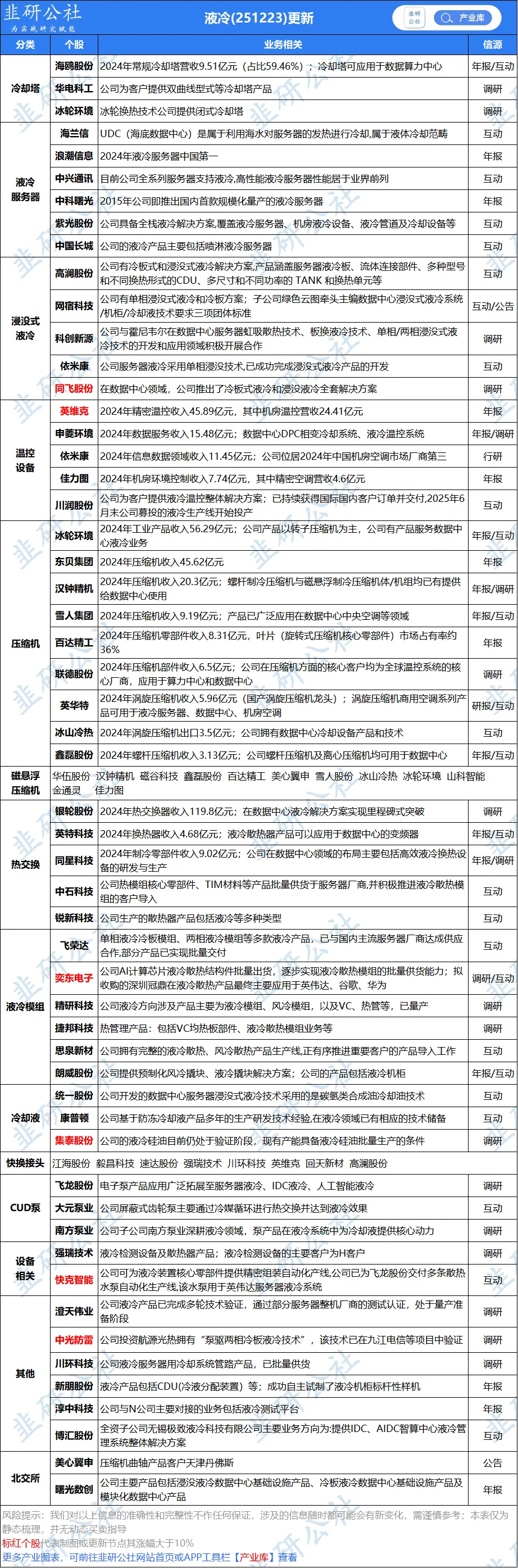 4)液冷:拥有全套服务器液冷解决方案,关注头部客户导入进展。