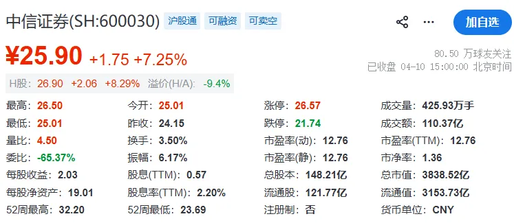 实际上,中信证券不仅一季报亮眼,2025年的业绩也很瞩目。