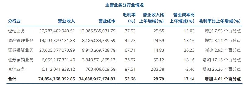 证券承销业务实现收入60.55亿元,同比增长50%,拿下了不少大项目。