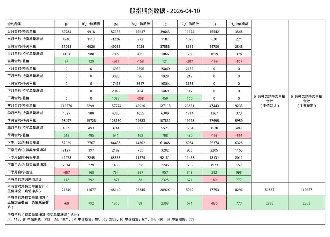 增量资金1.85%,300基差83.77,1000基差233.43,沪深300股指期货中信净空单增加,中证1000中信净空单小幅增加、中证500中信净空单增加。