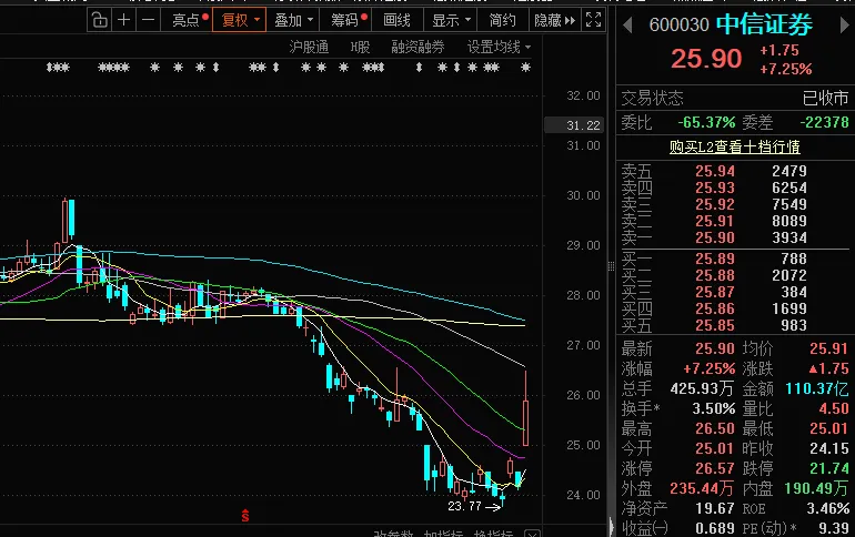受强劲的财报刺激,今天中信证券直接干拔7%: