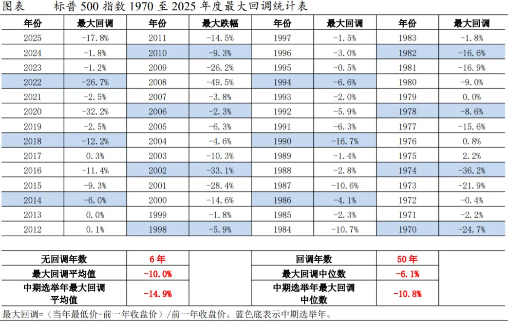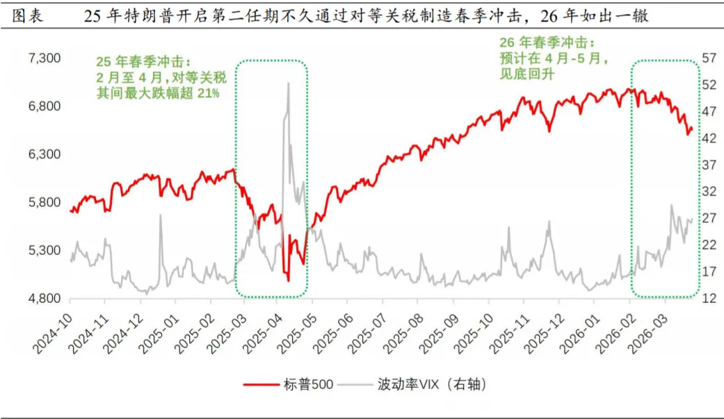 2025年1月特朗普开启总统第二任期,不久之后推出对等关税,其间标普500 最大跌幅达21%,制造了典型的‘春季冲击’,通过制造股市下跌换取了更 多政策或美股空间。今年2月底对伊朗发动战争,再次制造似曾相识的“春 季冲击”,还是原来的配方,还是熟悉的味道!