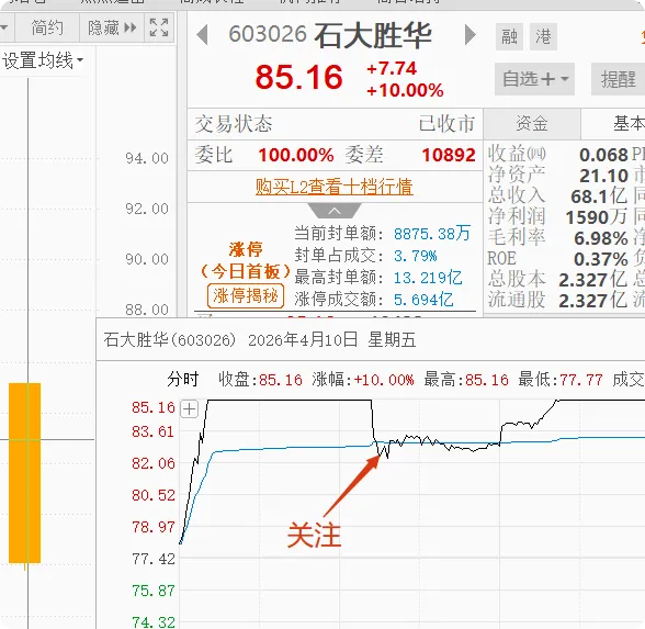 后面回落到分时均线下方,依然是咱们最拿手擅长的低吸模式,