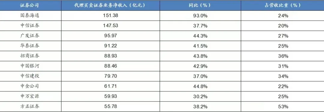 以中信为代表的行业龙头,传统经纪业务占比甚至不到1/4。