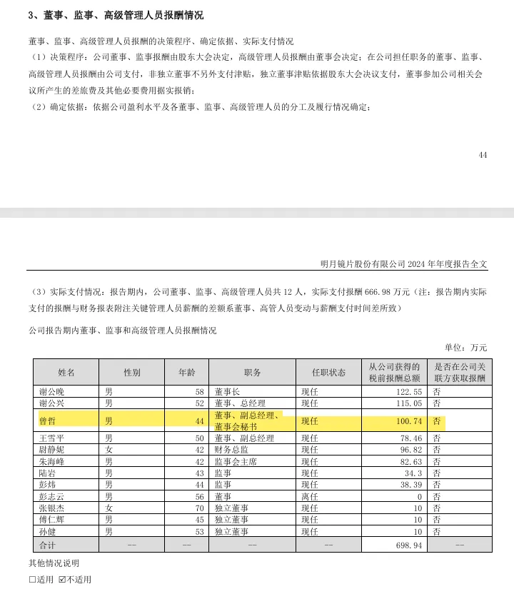 王雪平先生,1975年生,中国国籍,无境外居留权,本科学历。历任明月光电副总经理、视博光学副总经理,2015年至今任明月镜片副总经理,2024年11月至今任明月镜片董事。