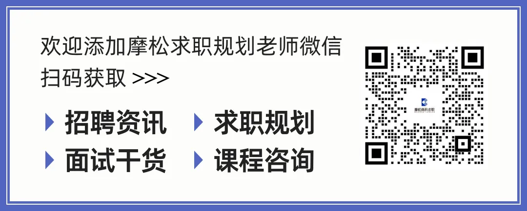 ◎ 欢迎添加摩松求职规划老师微信,扫码获取 >>>招聘资讯、求职规划、面试干货、课程咨询