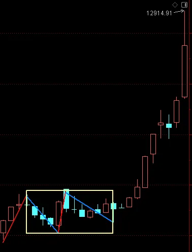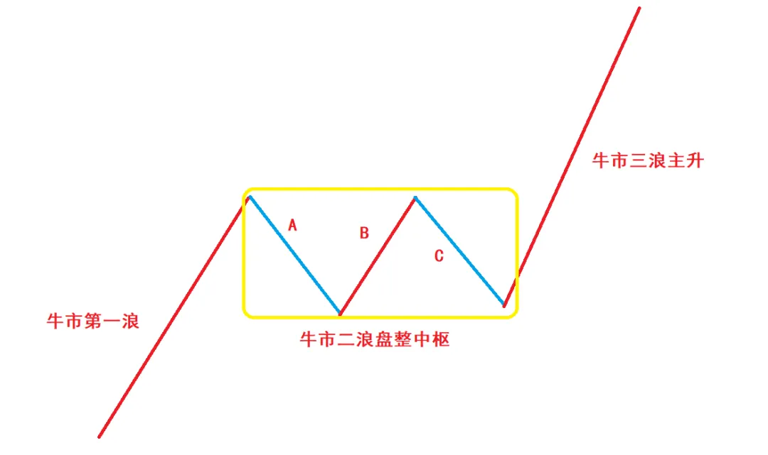 (见下图)证券板块牛市第一浪完成后,2013年2月到2014年6月是典型牛市二浪盘整中枢,然后就爆发了三浪主升,具体日线走势大家自己回看。