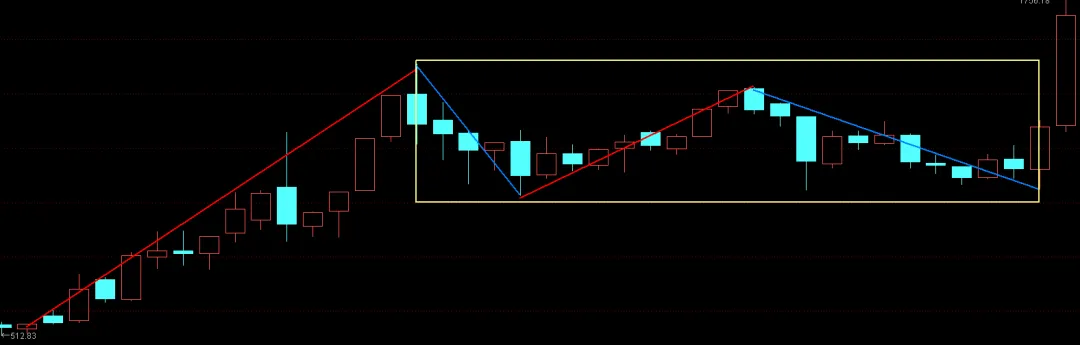(见下图)上证指数牛市第一浪完成后,1997年5月到1999年5月是典型牛市二浪盘整中枢,然后就爆发了典型的5.19行情,具体日线走势大家自己回看。