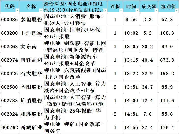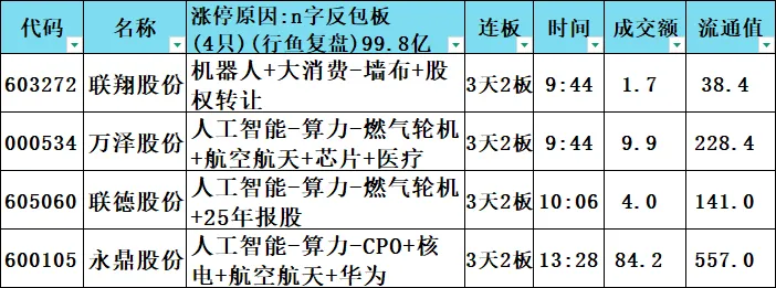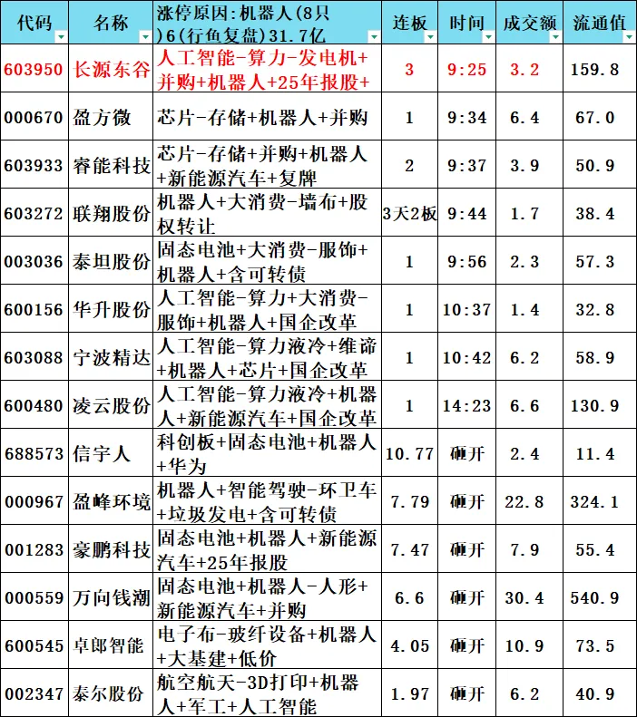 连板股:13只 115.3亿元