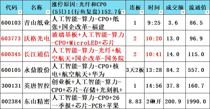 光纤和cpo:5只 152.7亿元