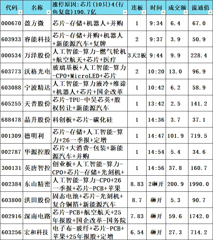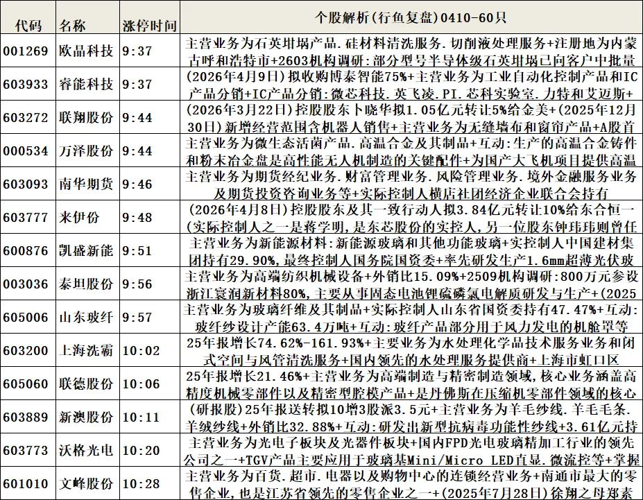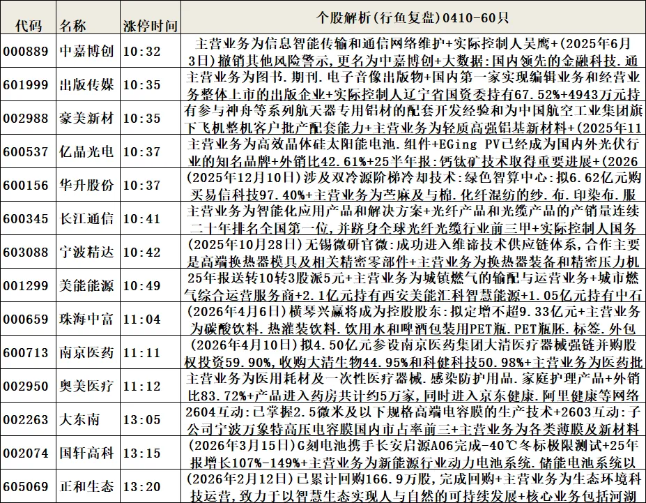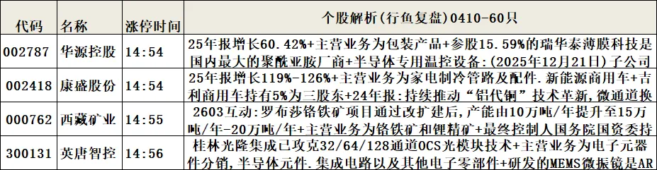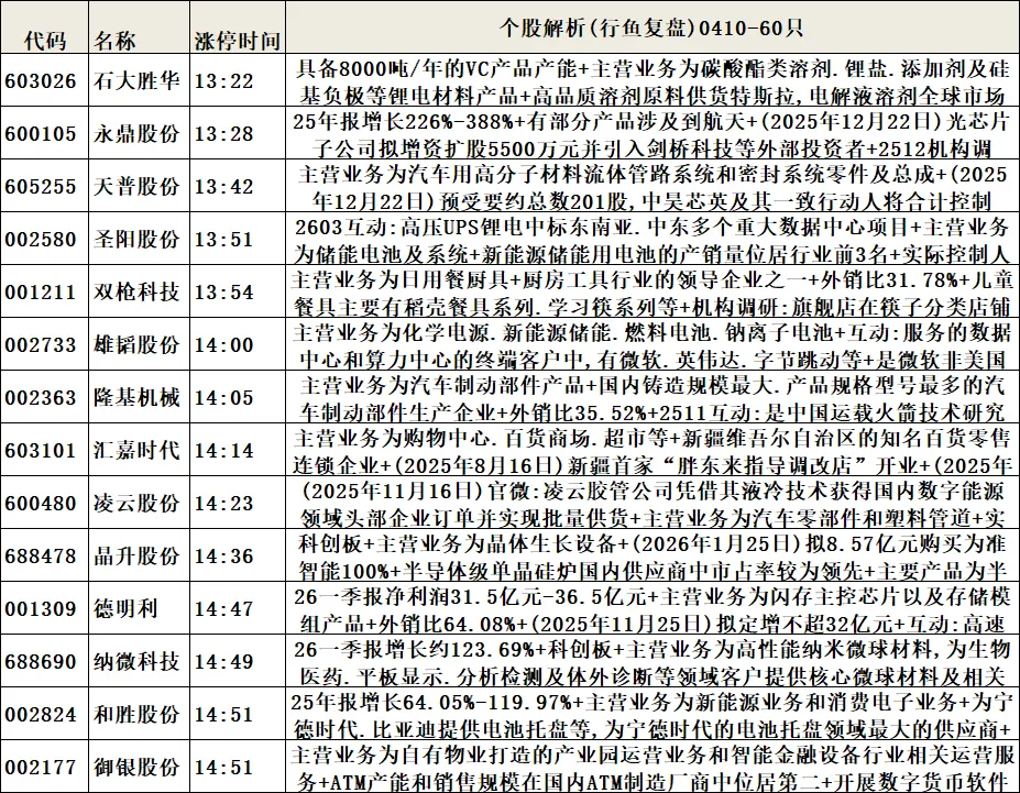 6.个股解析(涨停时间排序,属于个股涨停原因补充细化或解析)。