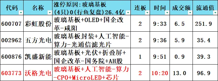 玻璃基板:4只 26.4亿元