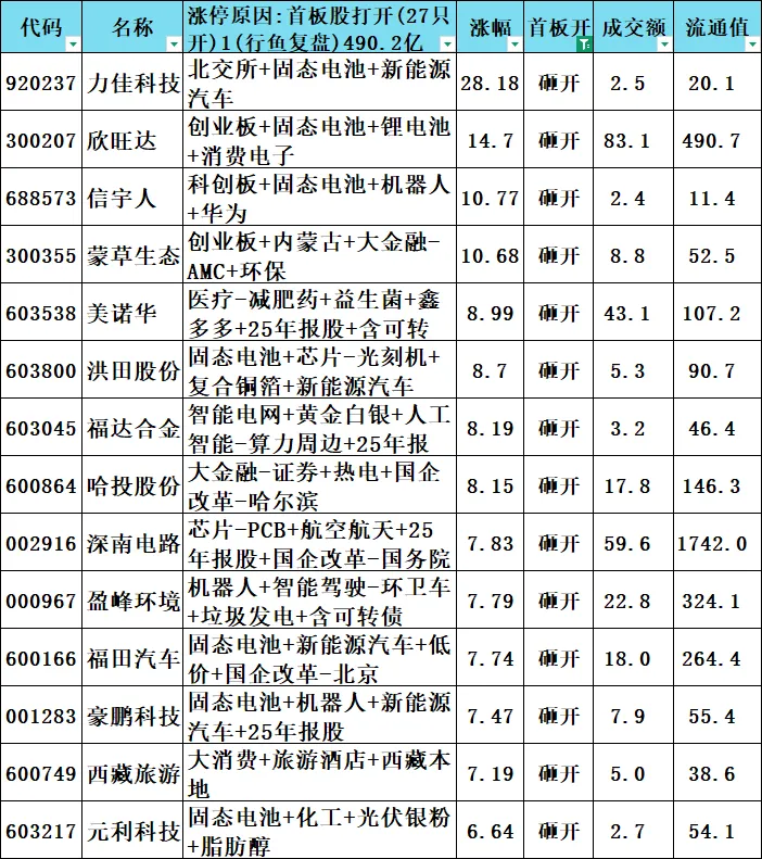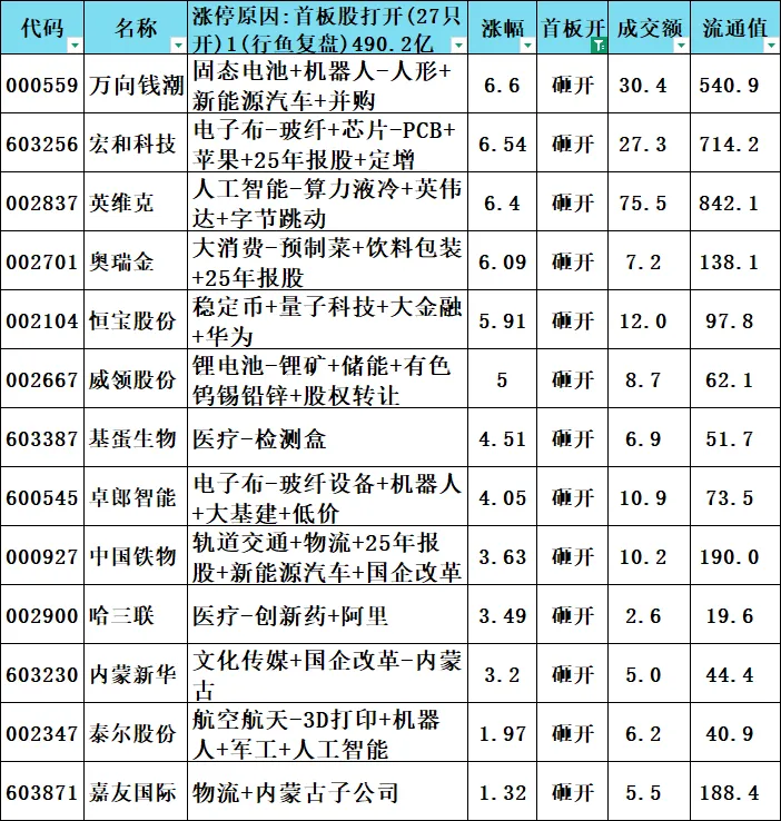 首板股打开:27只 490.2亿元