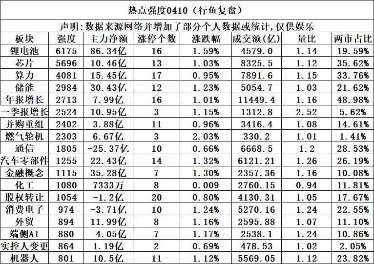 盘面,周五早盘一度绿盘只有几百家了,满眼红通通,但是自已的帐户却是绿的,感觉炒了假股,不过看到同花顺热股指数,也觉得正常了,本身短线选手的维度就不在一个空间内,周五指数和市场情绪都非常好,但短线情绪很差,最高板汇源秒跌停,这就是典型的和盘面背离了,看市场数据,59只涨停,8家跌停,和周五的指数及市场情绪不符,这也是一种背离,这个也能反映短线市场的好坏,站在一个短线交易选手的角度上去看周五的市场,周五市场是非常难的一天,甚至有一丝退潮日的感觉,首先是光纤这个主热点的退潮,汇源通信,法尔胜,新能泰山三只板块内的人气热股躺在地板上,龙头长飞光纤也是sha到大阴,然后其它题材又开启了电风扇模式,证劵,锂电,数字货币,CPO拉了一轮,最后是谁也不能成为主角,所以周五如果看着大盘指数或创业板指数这个气势去操作,估计踩的坑会不少,短线选手周五正确的操作还是减缓操作,空仓等待,因为属于你的风还没来,下周一没有太多预判,估计还是难,走一步看一步。