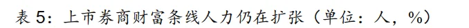 投资顾问及分析师队伍人力队伍延续扩张。分执业资格来看,经纪人、投资顾问、分析师、保荐代表人、投资主办人分别为22,871、86,102、6,083、8,519、354人,较年初分别-19.5%、+7.2%、+9.3%、-3.3%、-20.8%,投资顾问仍是证券行业第一大人才队伍。从人力扩张角度来看,财富管理转型下投资顾问和分析师仍是人员扩张的主要方向。