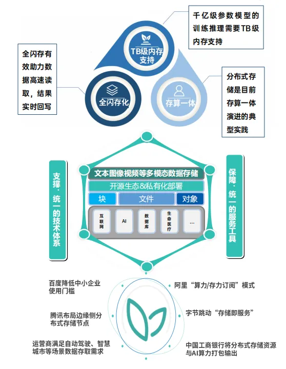 · 分布式存储标准化与生态建设提速,创新成果加速涌现。2024年8月, 中国分布式存储产业方阵成立 ,标志着行业进入标准化协同发展阶段。随着《分布式存储系统技术要求》《分布式全闪存性能测试规范》等多项团体标准的发布 ,分布式存储统一技术接口与性能指标进一步确定, 降低了企业跨平台协作成本 ,助力分布式存储产品走向海外市场。其中AI存储标准化成为分布式存储技术攻关与场景适配的典型代表 ,在医疗影像 、 自动驾驶等场景的深度应用。随着标准化与生态的持续推进 ,存算一体芯片 、智能元数据管理等核心技术,以及 冷热 数据分层算法 、 跨云存储调度引 擎等创新成果有望加速涌现 。
